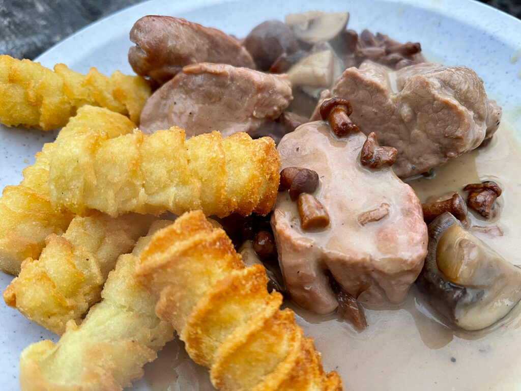Bei so einem Essen steckt die Variation natürlich in erster Linie in den Beilagen. Grüne Bohnen, Kroketten oder andere kartoffelige Beilagen, Rotkohl - dazu passt so ziemlich alles, was Ihr noch in der Vorratskammer oder im Gefrierfach habt.